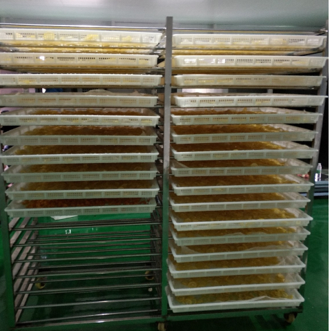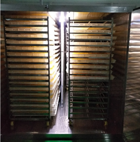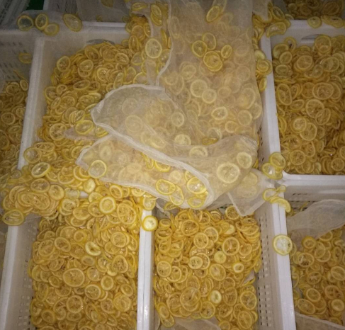等待烘干完成后取出至冷卻即可進行包裝了。某客戶實際烘干案例,其1000斤生的檸檬片,烘干后得700斤檸檬干,濕干比例為10:7,效果滿意。