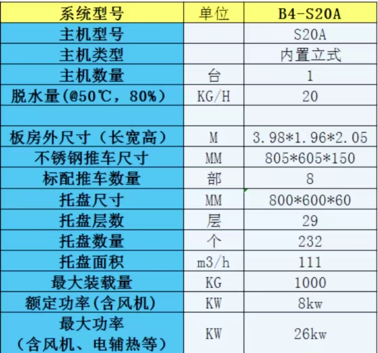 黃花菜烘干機技術(shù)參數(shù)