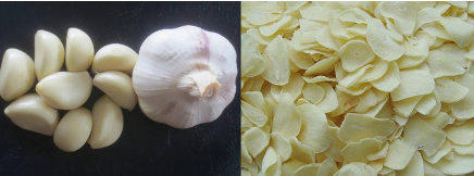 五、干燥: 將蒜片均勻鋪放在不銹鋼物料托盤上,溫度控制在55-60°C左右,烘6-8小時(shí)。烘干期間須嚴(yán)格控制好時(shí)間和溫度,以免干燥時(shí)間過(guò)長(zhǎng),溫度過(guò)高,使蒜片色澤、外形及營(yíng)養(yǎng)價(jià)值受損,影響蒜片的品質(zhì)。